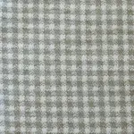 Coin purse with a top zipper and a small beige cord side handle. Made from thick jacquard fabric (80% cotton, 20% polyester) with a vichy check pattern in beige and ecru tones. Each item may vary slightly in pattern, depending on where the fabric is cut. Fully lined with thick gray fabric on the inside.